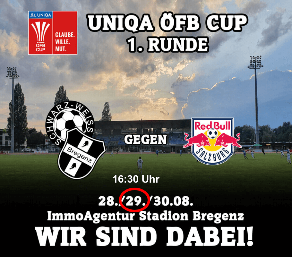 Es ist die Chance, Flagge zu zeigen für alle, die unseren Verein bisher so tatkräftig unterstützt haben und das jetzt ganz besonders im ÖFB Cup Spiel gegen Red Bull Salzburg machen möchten.